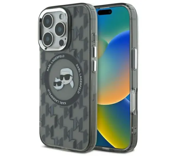 Etui Karl Lagerfeld IML Monogram Karl&Choupette Head MagSafe do iPhone 16 Pro Czarny