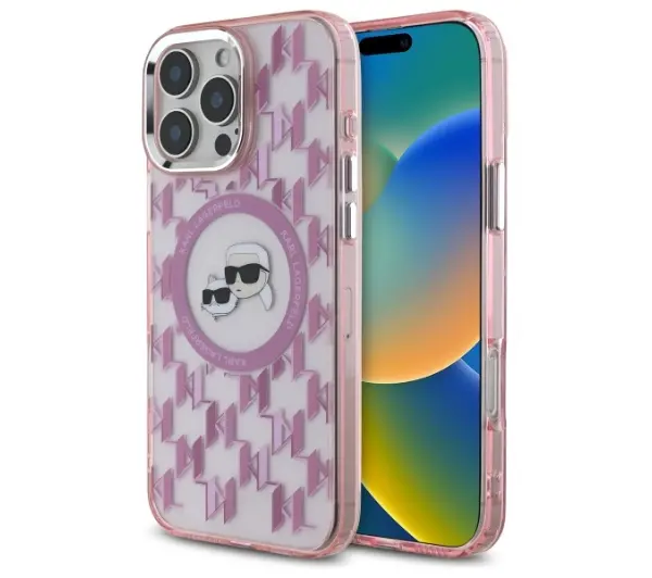 Etui Karl Lagerfeld IML Monogram Karl&Choupette Head MagSafe do iPhone 16 Pro Różowy