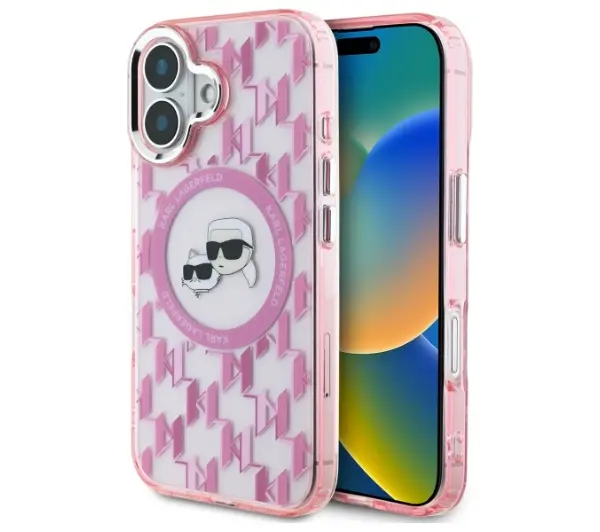 Etui Karl Lagerfeld IML Monogram Karl&Choupette Head MagSafe do iPhone 16 Różowy