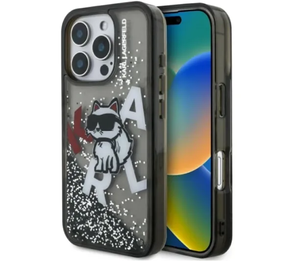 Etui Karl Lagerfeld Liquid Glitter Choupette Logo do iPhone 16 Pro Czarny