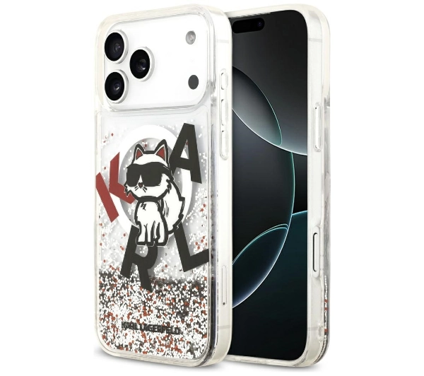 Etui Karl Lagerfeld Liquid Glitter Choupette Logo MagSafe do iPhone 17 Pro Max Przezroczysty