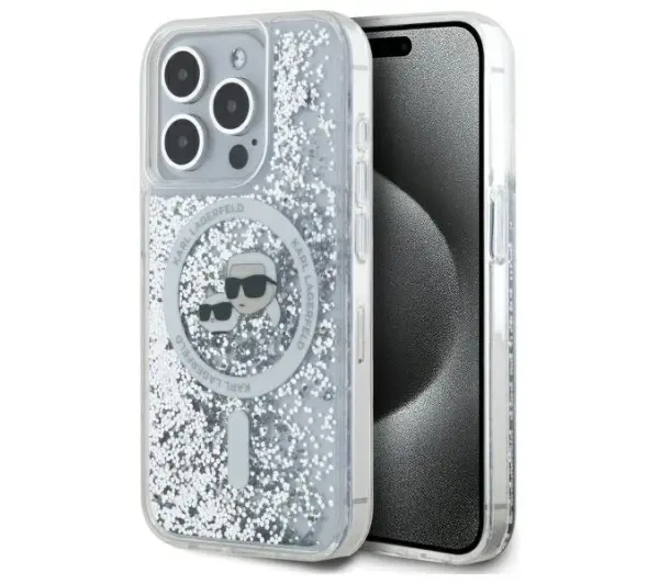 Etui Karl Lagerfeld Liquid Glitter Karl&Choupette Head Magsafe do iPhone 15 Pro Przezroczysty