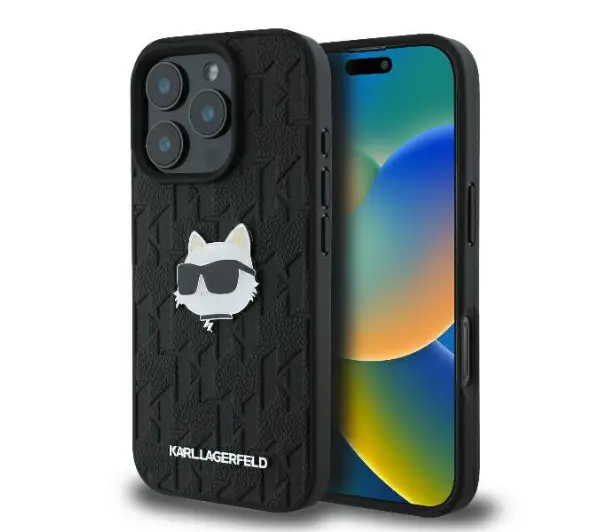 Etui Karl Lagerfeld Monogram Choupette Head Pin do iPhone 16 Pro Max Czarny