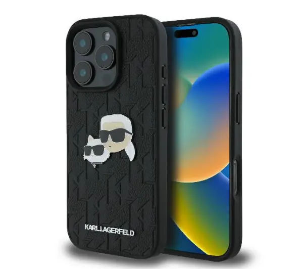 Etui Karl Lagerfeld Monogram Karl&Chaoupette Head Pin do iPhone 16 Pro Max Czarny