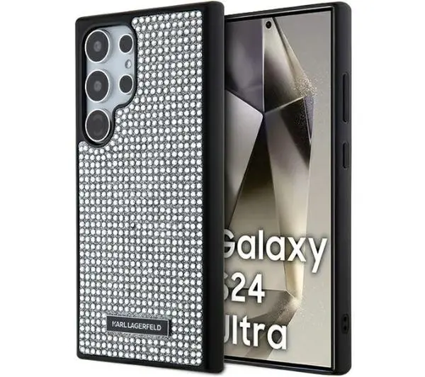 Etui Karl Lagerfeld Rhinestone Logo Metal Plate do Samsung Galaxy S24 Ultra Srebrny