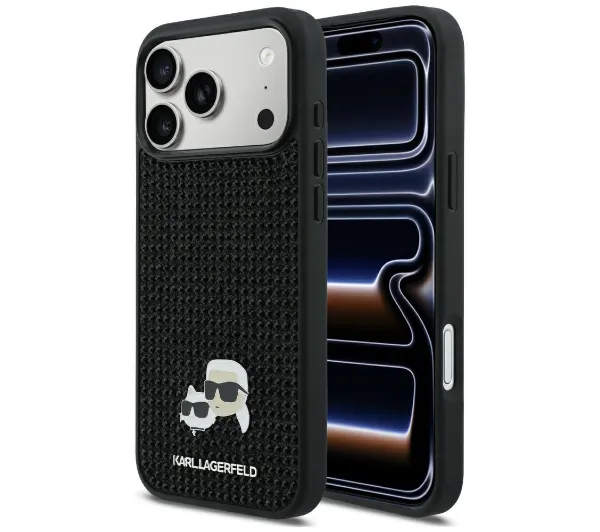 Etui Karl Lagerfeld Rhinestones Karl&Choupette Pin do iPhone 17 Pro Max Czarny