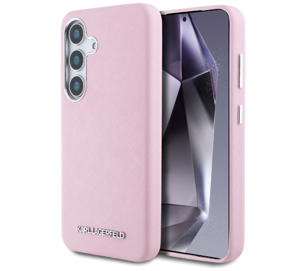 Etui Karl Lagerfeld Saffiano Full Wrapped Elongated Metal Logo MagSafe do Galaxy S25 Różowy