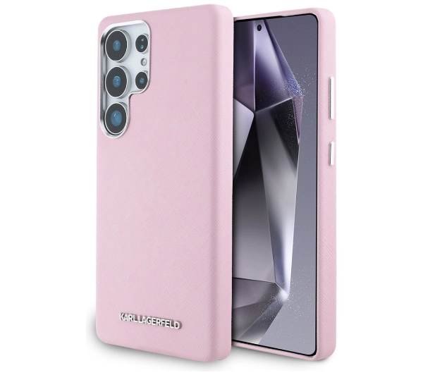 Etui Karl Lagerfeld Saffiano Full Wrapped Elongated Metal Logo MagSafe do Galaxy S25 Ultra Różowy
