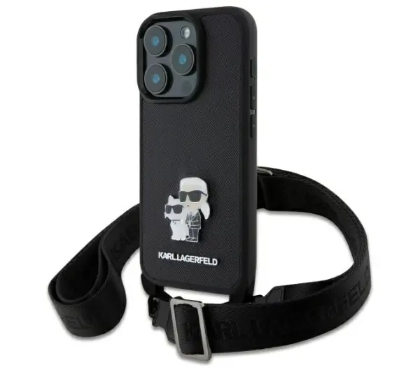 Etui Karl Lagerfeld Saffiano Karl&Choupette Metal Pin CBDY Strap do iPhone 16 Pro Czarny