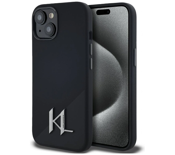 Etui Karl Lagerfeld Silicone Shadow Metal Initial MagSafe do iPhone 15 Czarny