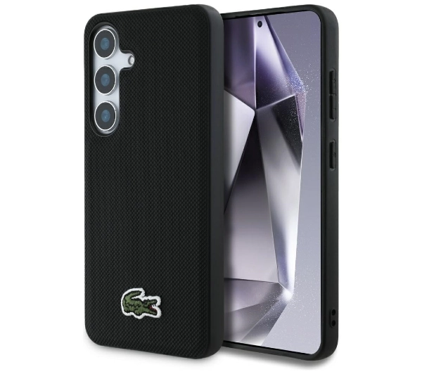 Etui Lacoste Iconic Petit Pique Woven Logo MagSafe do Galaxy S25 Czarny
