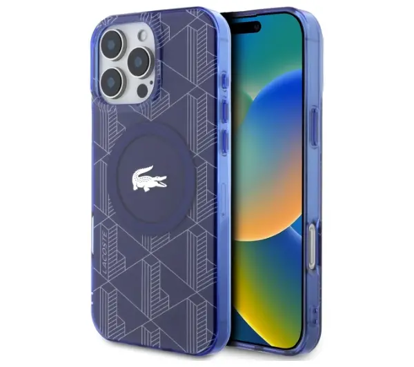 Etui Lacoste IML Blend Monogram MagSafe do iPhone 16 Pro Max Granatowy