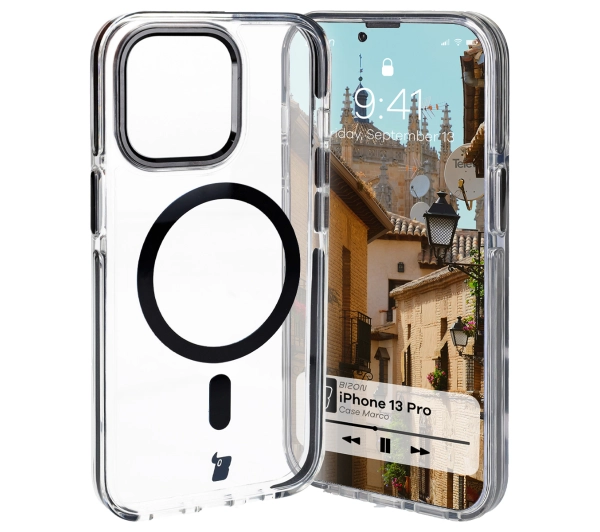 Etui Bizon Marco z MagSafe do iPhone 13 Pro Przezroczysty z Czarną ramką
