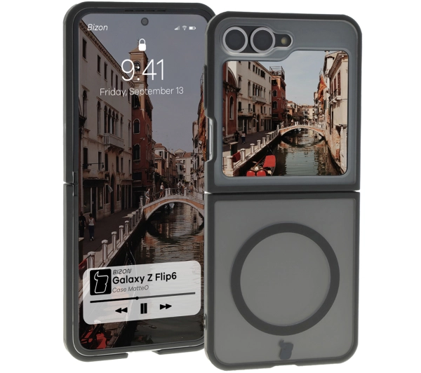 Etui Bizon MatteO z MagSafe do Galaxy Z Flip6 Półprzezroczysty z Czarną ramką