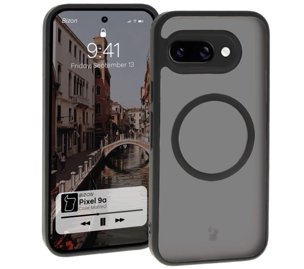 Etui Bizon MatteO z MagSafe do Google Pixel 9a Półprzezroczyste z czarną ramką