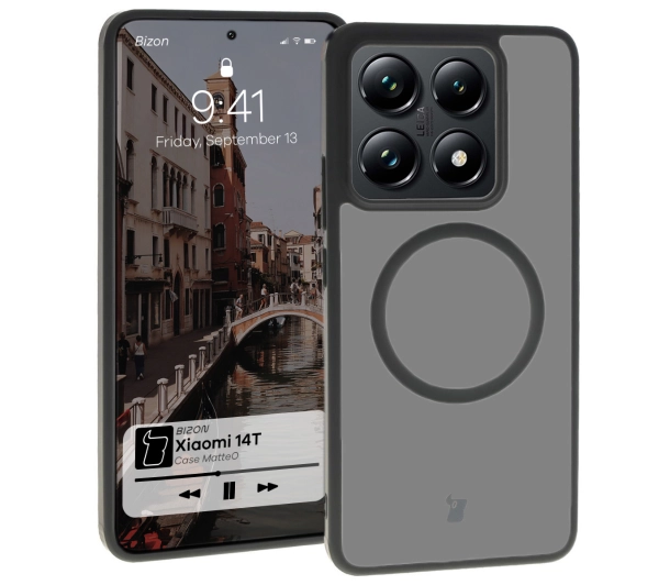 Etui Bizon MatteO z MagSafe do Xiaomi 14T Półprzezroczyste z czarną ramką