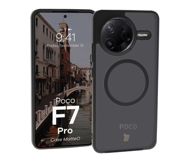 Etui Bizon MatteO z MagSafe do Xiaomi Poco F7 Pro Przydymione-czarny