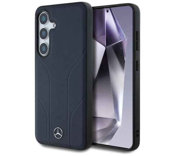 Etui Mercedes-Benz Leather Debossed Lines MagSafe do Galaxy S25 Niebieski