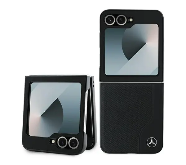 Etui Mercedes-Benz Leather Wood do Galaxy Z Flip 6 Czarny