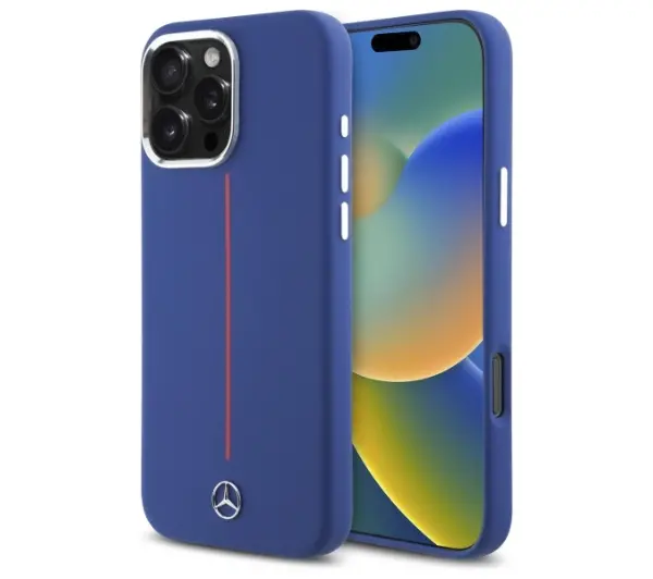 Etui Mercedes-Benz Silicone Red Stripe MagSafe do iPhone 16 Pro Max Granatowy