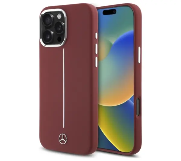 Etui Mercedes-Benz Silicone White Stripe MagSafe do iPhone 16 Pro Max Czerwony