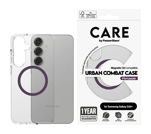 Etui PanzerGlass CARE by Flagship Urban Combat Purple QI do Galaxy S25 Plus Przezroczysty