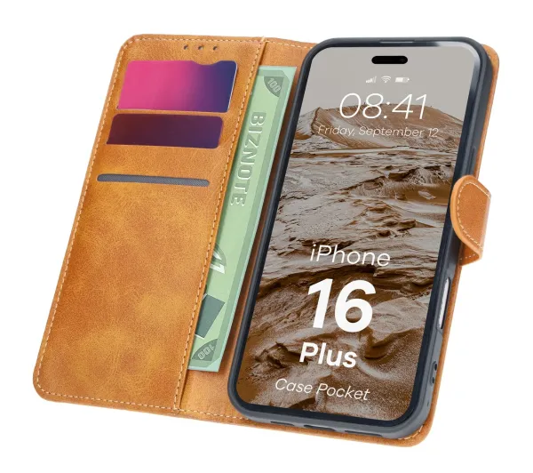 Etui Bizon Pocket do Apple iPhone 16 Plus Brązowy