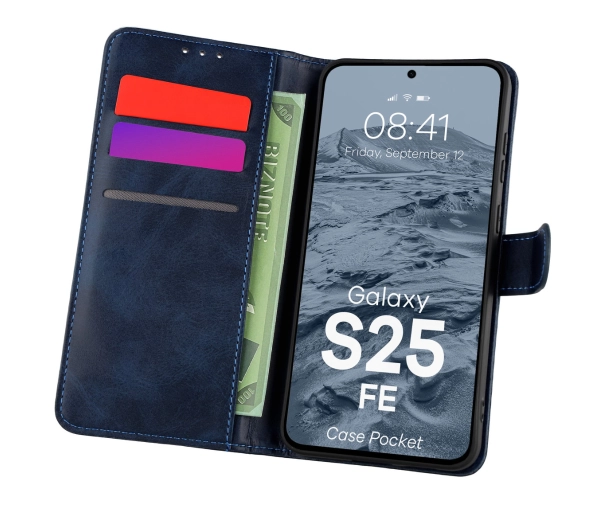 Etui Bizon z klapką Pocket do Samsung Galaxy S25 FE Niebieski