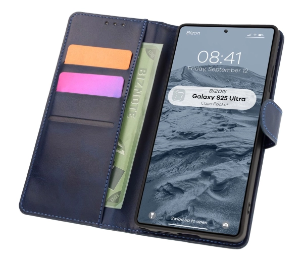 Etui Bizon z klapką Pocket do Galaxy S25 Ultra Granatowy