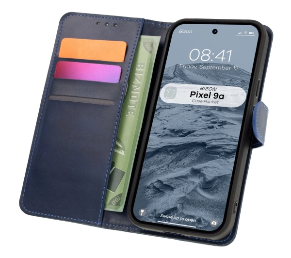 Etui Bizon z klapką Pocket do Google Pixel 9a Granatowy