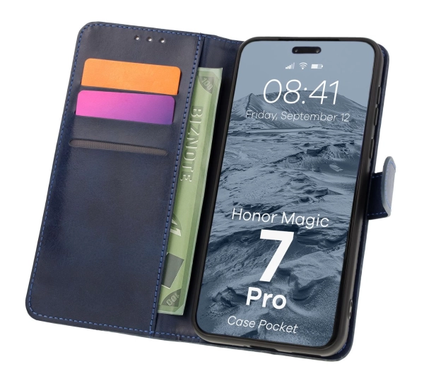 Etui Bizon z klapką Pocket do Honor Magic7 Pro Granatowy