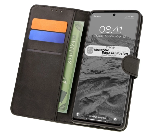 Etui Bizon z klapką Pocket do Motorola Edge 50 Fusion Czarny