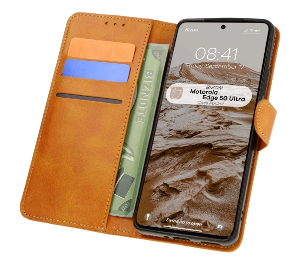 Etui Bizon z klapką Pocket do Motorola Edge 50 Ultra Brązowy