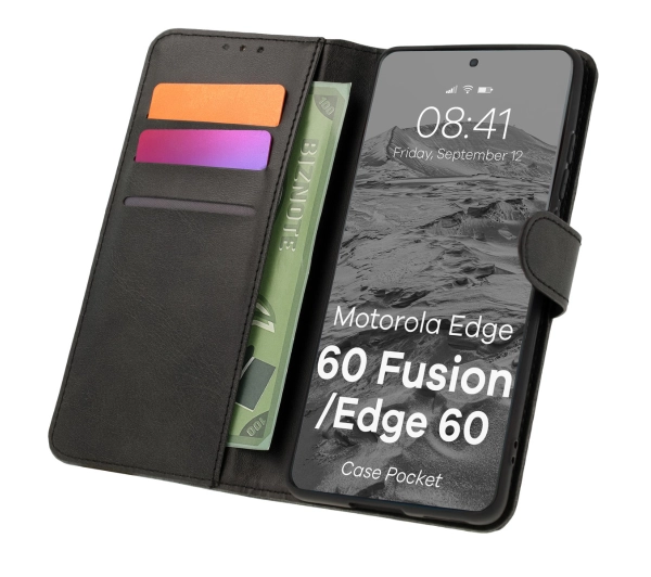 Etui Bizon z klapką Pocket do Motorola Edge 60 Fusion Czarny