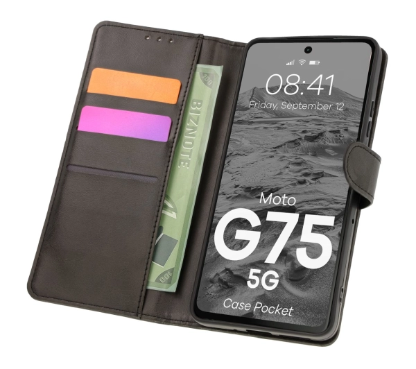 Etui Bizon z klapką Pocket do Motorola Moto G75 5G Czarny