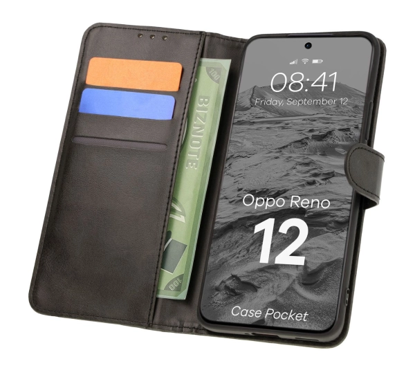 Etui Bizon z klapką Pocket do Oppo Reno 12 Czarny