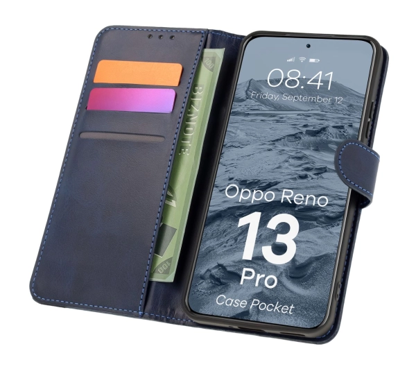 Etui Bizon z klapką Pocket do Oppo Reno13 Pro Granatowy