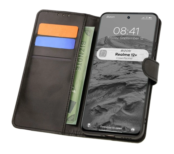 Etui Bizon z klapką Pocket do Realme 12+ Czarny