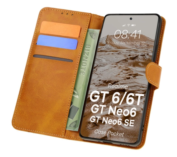 Etui Bizon z klapką Pocket do Realme GT 6/6T/Neo 6/Neo 6 SE Brązowy
