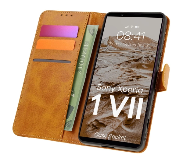 Etui Bizon z klapką Pocket do Sony Xperia 1 VII Brązowy