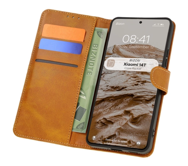 Etui Bizon z klapką Pocket do Xiaomi 14T Brązowy
