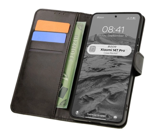 Etui Bizon z klapką Pocket do Xiaomi 14T Pro Czarny