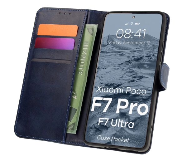 Etui Bizon z klapką Pocket do Xiaomi Poco F7 Pro/F7 Ultra Granatowy