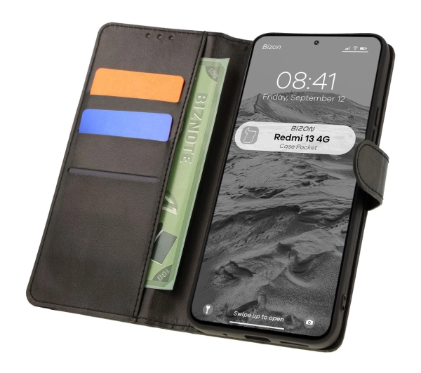 Etui Bizon z klapką Pocket do Xiaomi Redmi 13 4G Czarny
