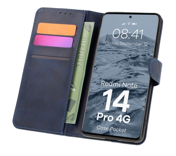 Etui Bizon z klapką Pocket do Xiaomi Redmi Note 14 Pro 4G Granatowy
