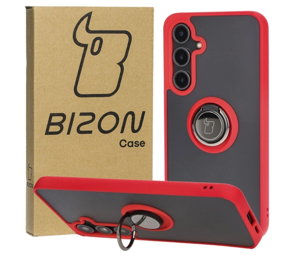 Etui Bizon z uchwytem na palec Hybrid Ring do Galaxy S24 FE Przydymione z czerwoną ramką