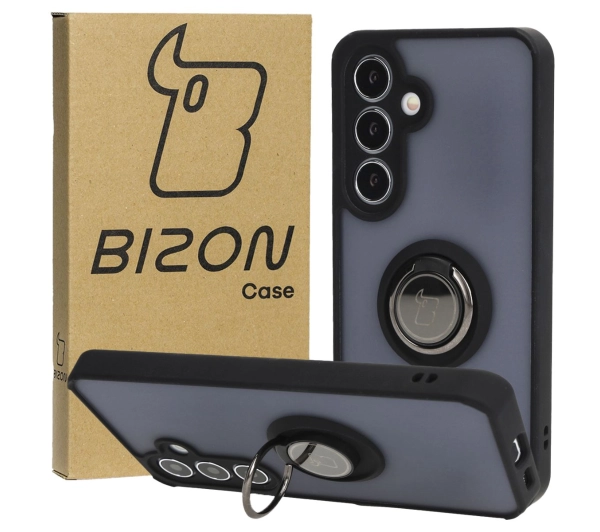 Etui Bizon z uchwytem na palec Hybrid Ring do Galaxy S25 / S24 Przydymione z czarną ramką