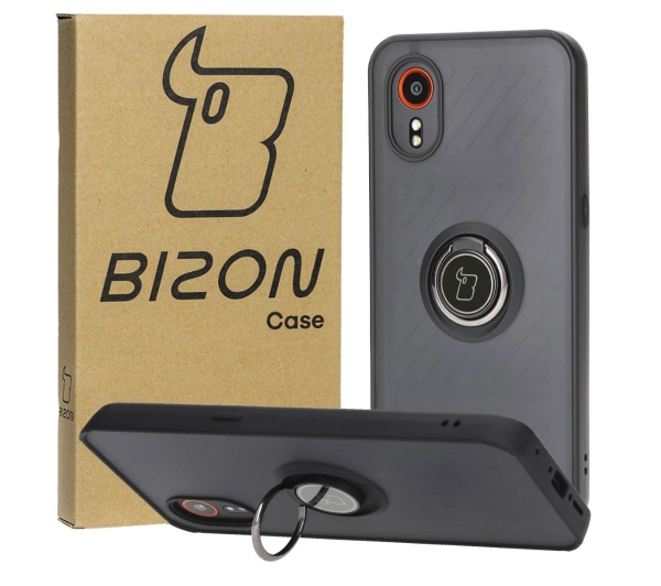 Etui Bizon z uchwytem na palec Hybrid Ring do Galaxy Xcover7 Przydymione z czarną ramką