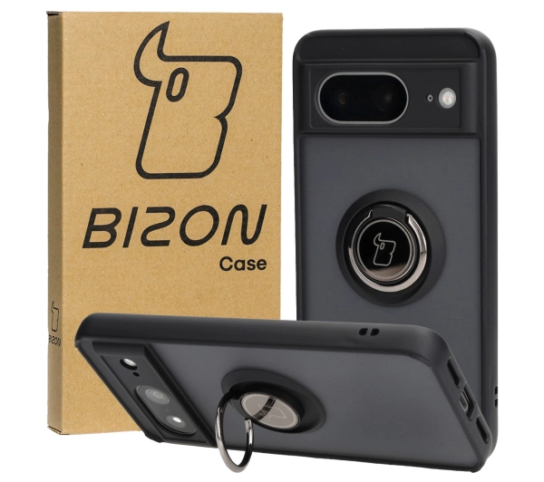 Etui Bizon z uchwytem na palec Hybrid Ring do Google Pixel 8 Przydymione z czarną ramką
