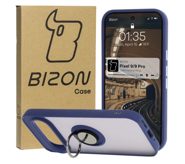 Etui Bizon z uchwytem na palec Hybrid Ring do Google Pixel 9/9 Pro przydymione z Granatową ramką